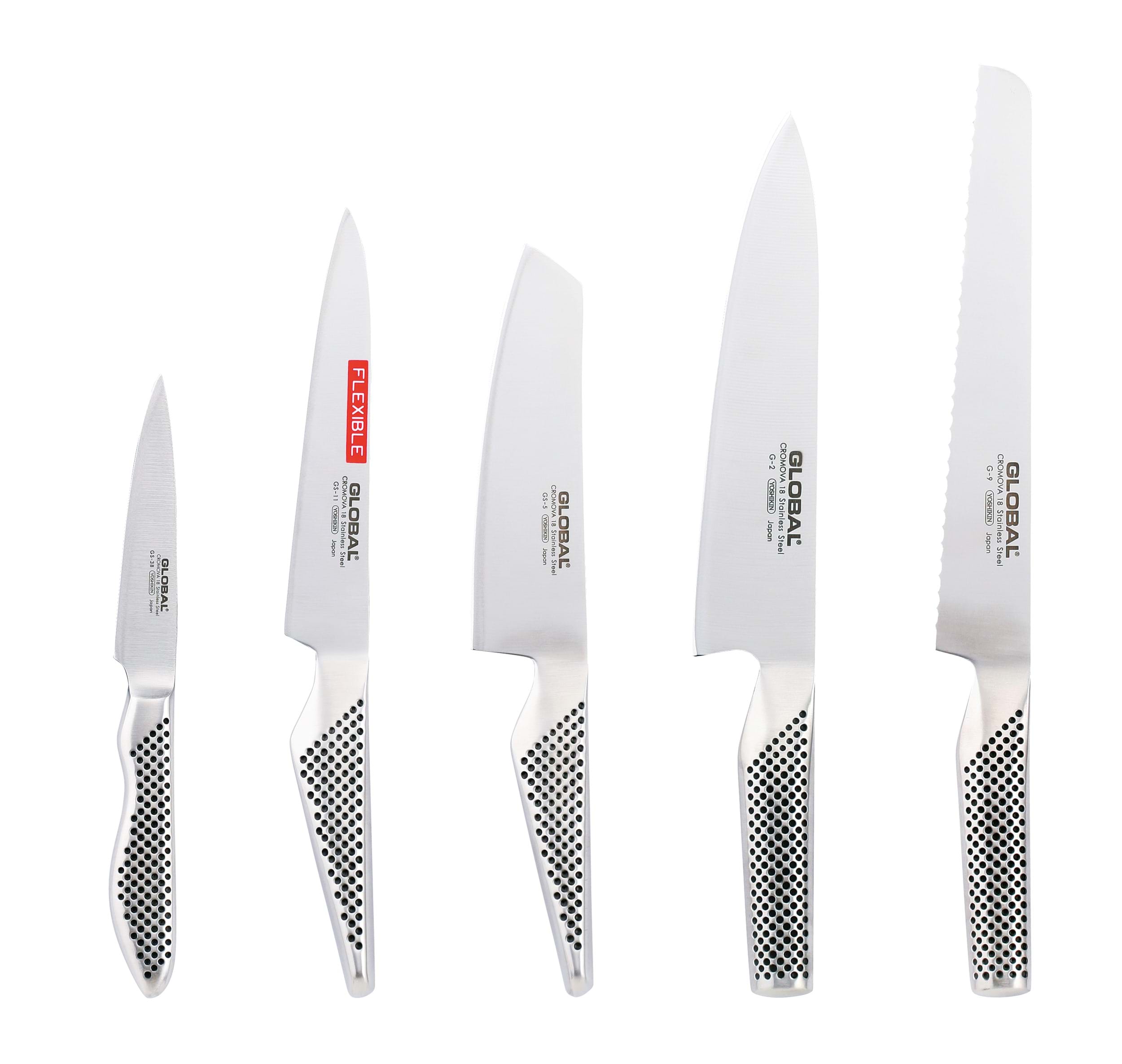 En perfekt grunduppsättning med köksknivar. Setet består av kockkniven G-2, brödkniven G-9, grönsakshackan GS-5, allkniven GS-11 samt skalkniven GS-38. Med hjälp av dessa fem knivar klarar du av de flesta uppgifter i köket, allt ifrån att skära bröd och hacka grönsaker till att putsa kött och skala lök.