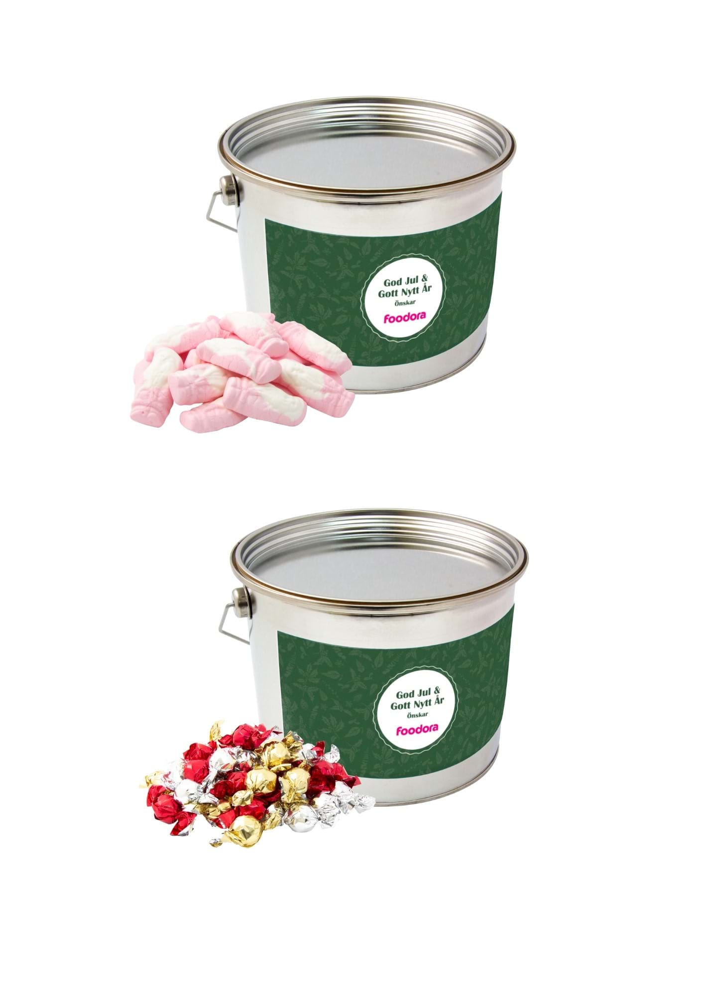 Plåthink med godis är en av våra storsäljare i julsortimentet. En bra julgåva att ge bort till, medarbetare, anställda och kunder. Välj på om du vill fylla hinken med inslaget varumärkesgodis, skumtomtar eller pralinkulor. Minsta antal är 25 st