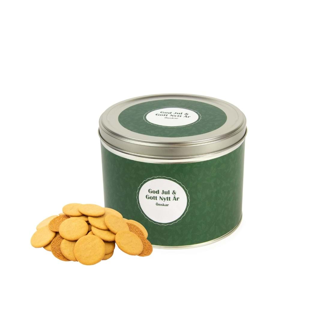 Vad ger mer julkänsla än pepparkakor? Skapa julstämning med pepparkakor i en plåtburk med jultema och er egna logotyp. Välj mellan svart eller vitt! Kan också tryckas med er helt egna design.
