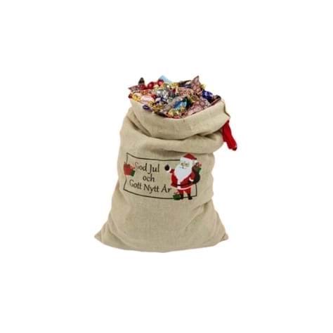 Julsäcken är en riktig favorit bland julgodis. Fyll den med antingen varumärkesmix eller pralinkulor. Smakerna på pralinkulorna är kakao, hasselnöt och caramel.