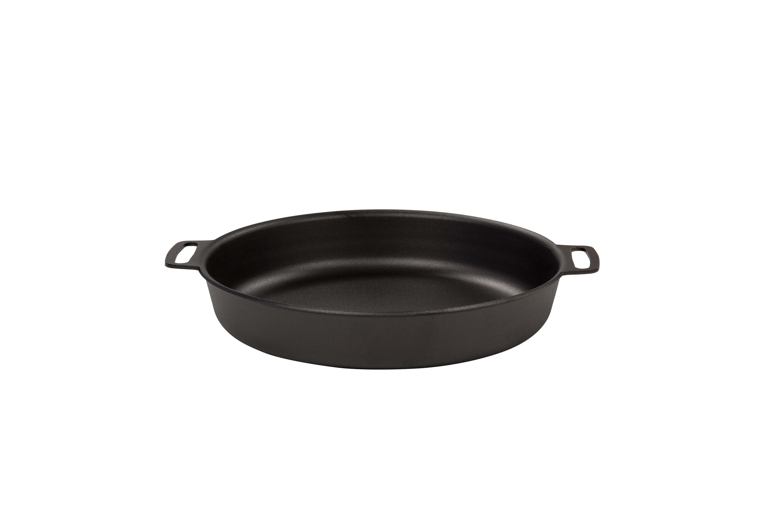 Gedigen svenskproducerad stekpanna/pajform i svenskt kolstål. Stekpannan är förinbränd med vegetabiliska oljor vilket gör den startklar direkt efter inköp och du slipper börja med en egen inbränningsprocedur. Den tål höga temperaturer och sprider värmen jämt och effektivt, vilket är perfekt för stekning och rostning. Fungerar på alla typer av värmekällor och i ugn. Använd den både som stekpanna och pajform. De dubbla handtagen gör den lätt att placera i ugnen.