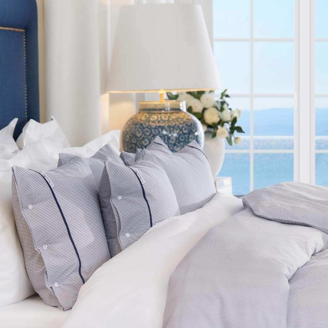 Hitta hotellkänslan hemma med Newports exklusiva påsalaknset Riverhead i fyra delar. Riverhead påslakanset har klassisk rand som ger en sofistikerad känsla. Kritstrecksmönstret och den dekorativa knäppningen med gummiknappar ger en tidlös design till ditt sovrum.