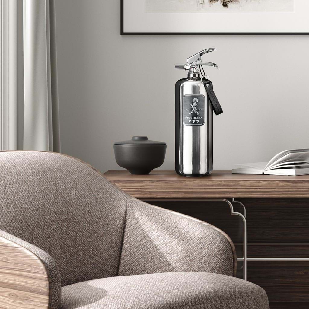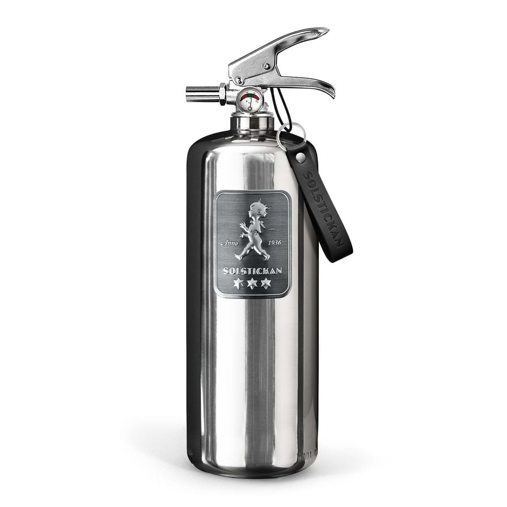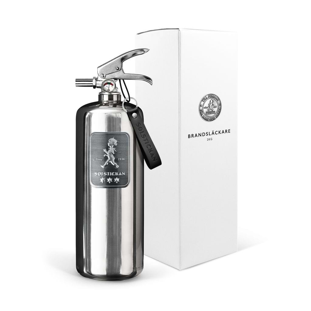 Solstickan Design Edition Steel är vår mest exklusiva brandsläckare designad för snygga hemmamiljöer. Släckeffekten på 13A 89B C är den högsta på marknaden för 2 kg pulver.